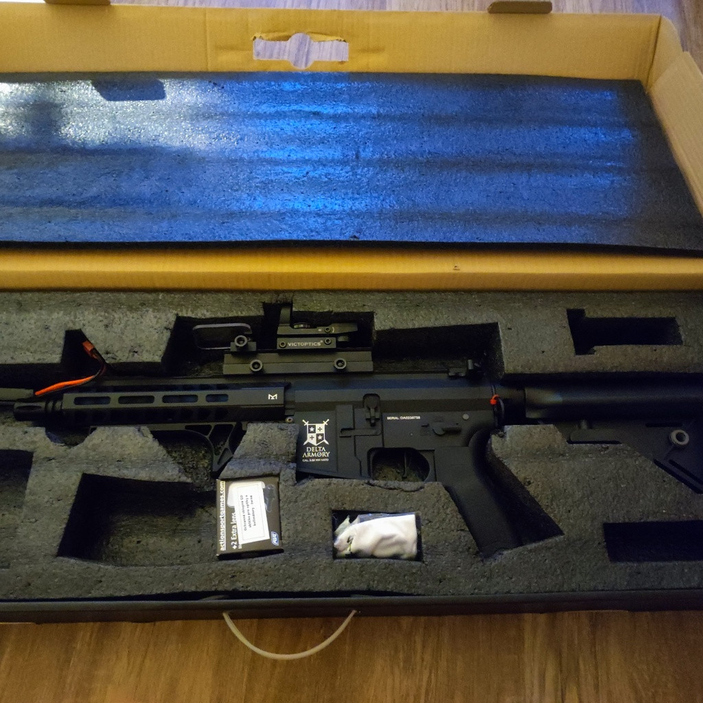 Prodám svoji rok starou airsoftovou zbraň. Zbraň teď prošla kompletním servisem a upgradem. kompletně rozebráno ,vyleštěný pojezdy, hlava pístu Tecaform Asparts, AOE korekce, přepodložený kola, Epes hlava válce, epes tryska, upravený válec pro epes, Quantum hop guma, doraz komory, nový uhlíky na motoru. A nová jedna z nejlepších hop komor od Maxe. Takže je připravena na sezónu jen vzít a hrát bez nutnosti žádného další upgradu. K tomu přidám ještě 3 zásobníky.