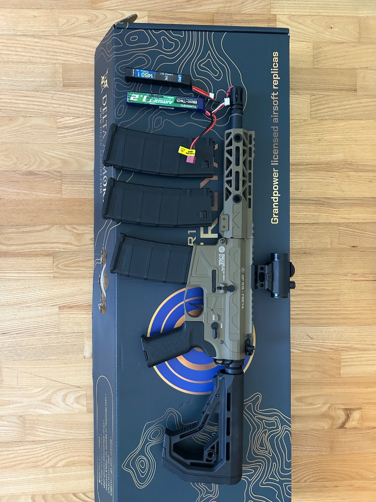 Zdravim Predám túto 3x hranu deltu armory freyu. Zbraň je v stave ako nová, ešte je v záruke 19 mesiacov. Pridám k nej kolimator, 3x zasobnik, 2x batériu, inteligentnú nabijacku a vestu s popruhom. Faktúru nieje problém preposlat na mail. Cena 300 plus dohoda