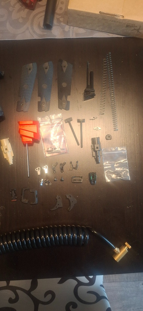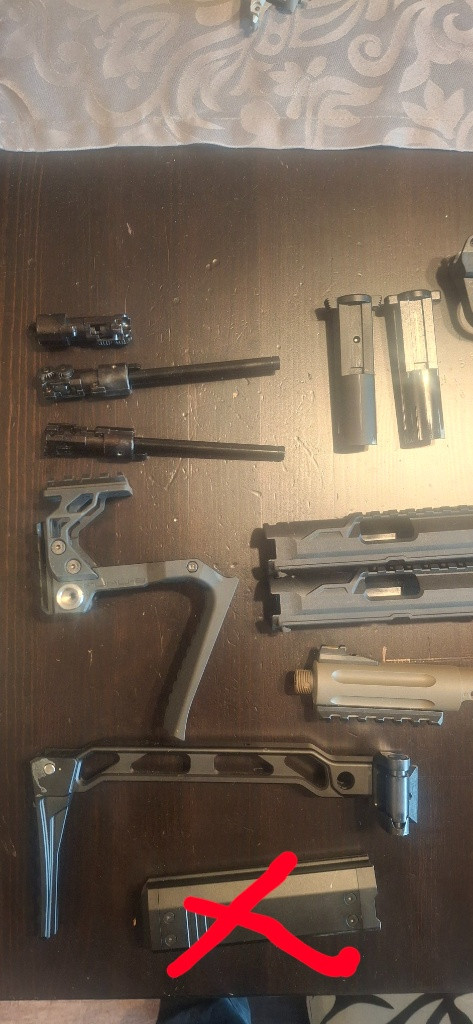 Zbavuju se všech základních tak i upgrade dílů na zbraň AAP- 01. + adaptér pro HPA s montáží na green gas lahev nebo TDC regulovací kolečko s lištou (to na fotkách neni). Pro dotazi či lepší fotky pište.