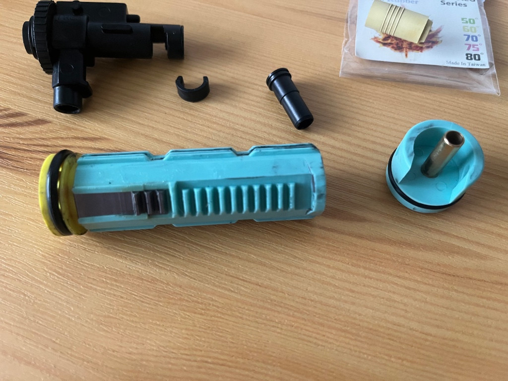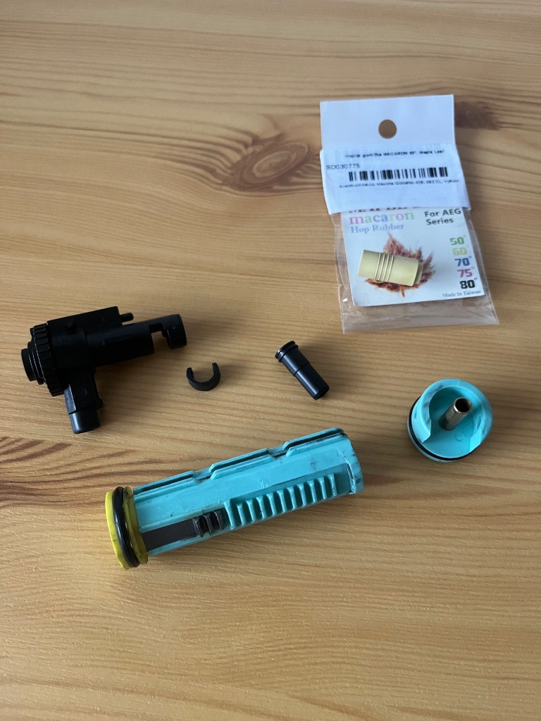Prodám základní díly z UTR45 od Double Eagle. Po upgradu zbraně mi to akorát leží doma. Vše plně funkční, bez poškození. Nejlépe prodám jako celek, ale můžete napsat, i když potřebujete jeden, dva díly. Cena dohodou.// K dispozici: píst s třemi kovovými zuby, hlava pístu, hlava válce, tryska, hlaveň 6,03/230mm, motor, kovová kola, hop up guma základní (není na foto), ML macaron guma.// Falcon procesorovka a hop komora už prodaná