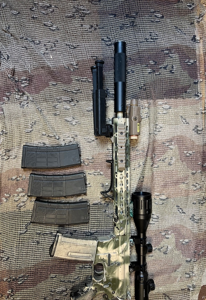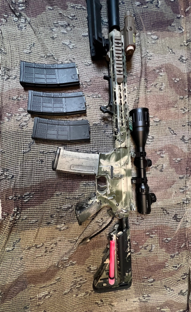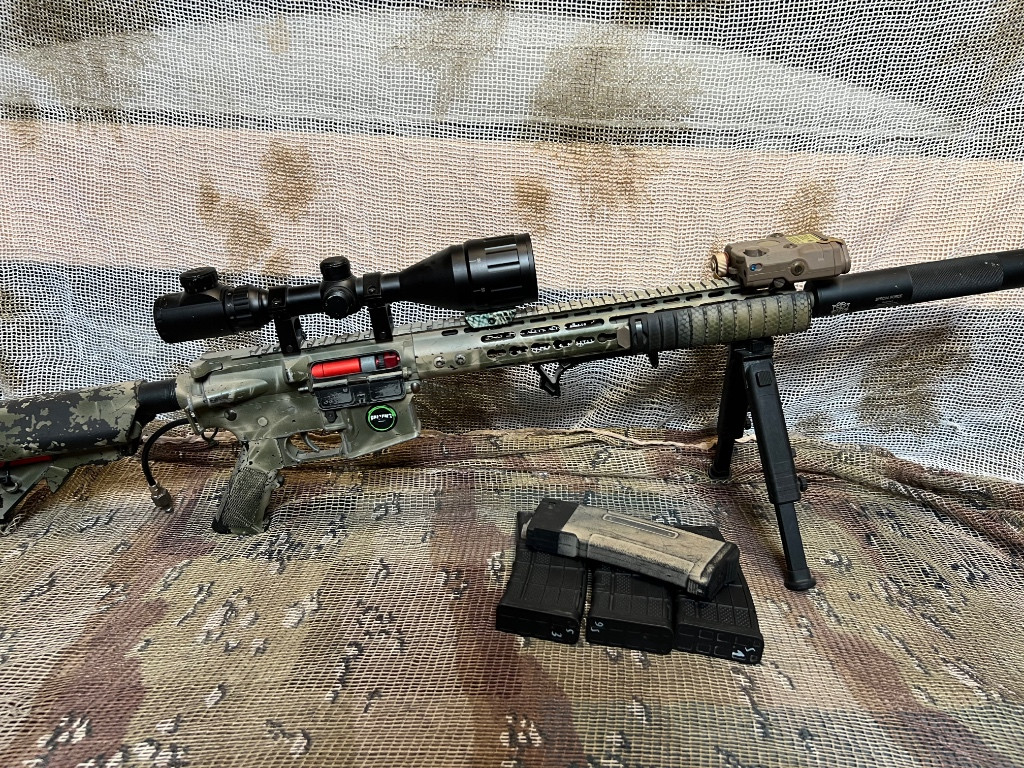 Prodám hpa minecraft dmr s příslušenstvím 4.zásobník tlační optika nožky grip fake pec box Zbraň ma prodlouženou hlaveň až do tlumiče a je velmi tichá a v maskovacím nástřiku při rychlém jednání možná sleva