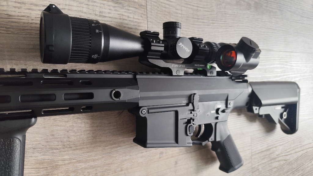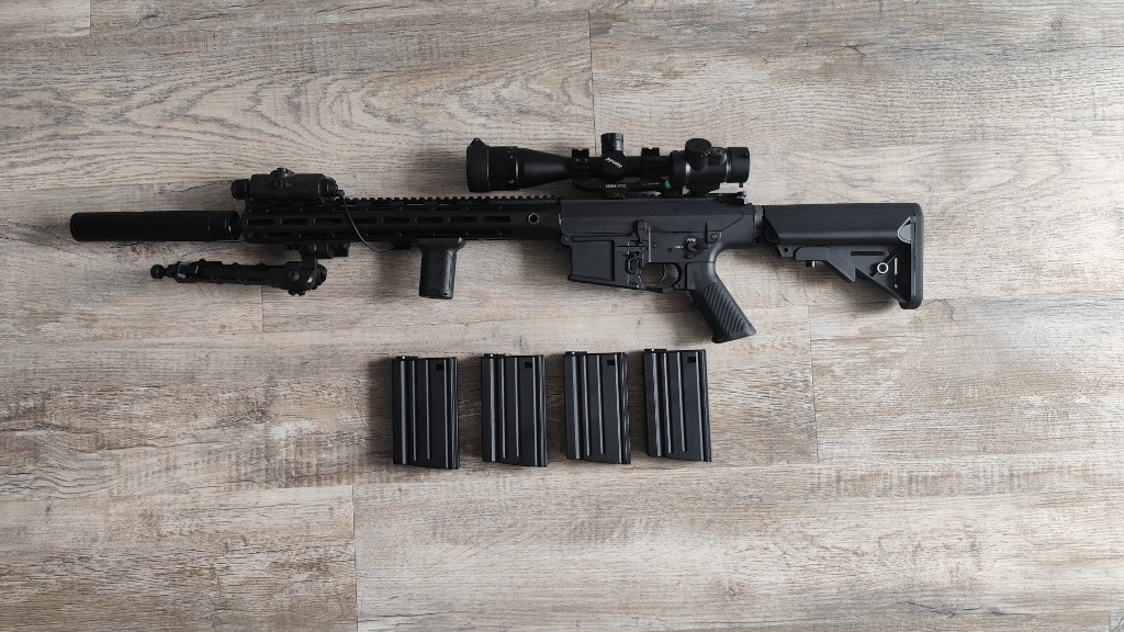 Prodám DMR vhodné rovnou k používání. Vše je kompletně nové až na PEQ box, ten už nějakou chvíli mám. Většina má ještě origo balení. Používaná skoro vůbec, jednou na akci a jednou na zahradě pro seřízení puškohledu. Zbraň: 1,8J 135 m/s Předpažbí M-LOK nahoře RIS lišta Tělo z kovové slitiny, pažba plast, výsuvná Závit M14x1 levotočivý vnější Vnitřní hlaveň cca 363 mm x 6,08 mm Puškohled: Puškohled nabízí plynulé přiblížení v rozsahu 4–16x a průměr objektivu 44 mm. Tubus má průměr 25,4 mm, oční reliéf je 80– 100 mm, délka puškohledu činí 320 mm a hmotnost 480 g. Záměrný kříž typu MR1-MOA je podsvícený (červená a zelená barva) s možností nastavení pěti úrovní intenzity. Napájení zajišťuje baterie CR2032. Korekce posunu je řešena po 1/4 MOA, paralaxa je nastavitelná v rozmezí 30 a 50 stop nebo 25, 50, 75, 100, 200, 300 yardů až po nekonečno. Puškohled se vyznačuje vysokou světelnou propustností 95 % a zelenou vícevrstvou povrchovou úpravou čoček. Obsah balení: - Airsoftová zbraň SR-25K (EC-903) - 4x kovový, tlačný zásobník na 130 ran - CNC dvojnožka (na RIS lištu) - Puškohled STORM PC1 4-16X44 AOE SFP - 45° kolimátor - Přední rukojeť (na M-Lok) - Tlumič (19 cm) - PEQ box ❗ PRODÁNO ❗ - RIS lišta SLEVA URČITĚ MOŽNÁ, PŘI NORMÁLNÍ DOMLUVĚ.