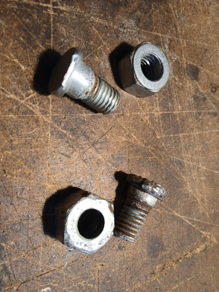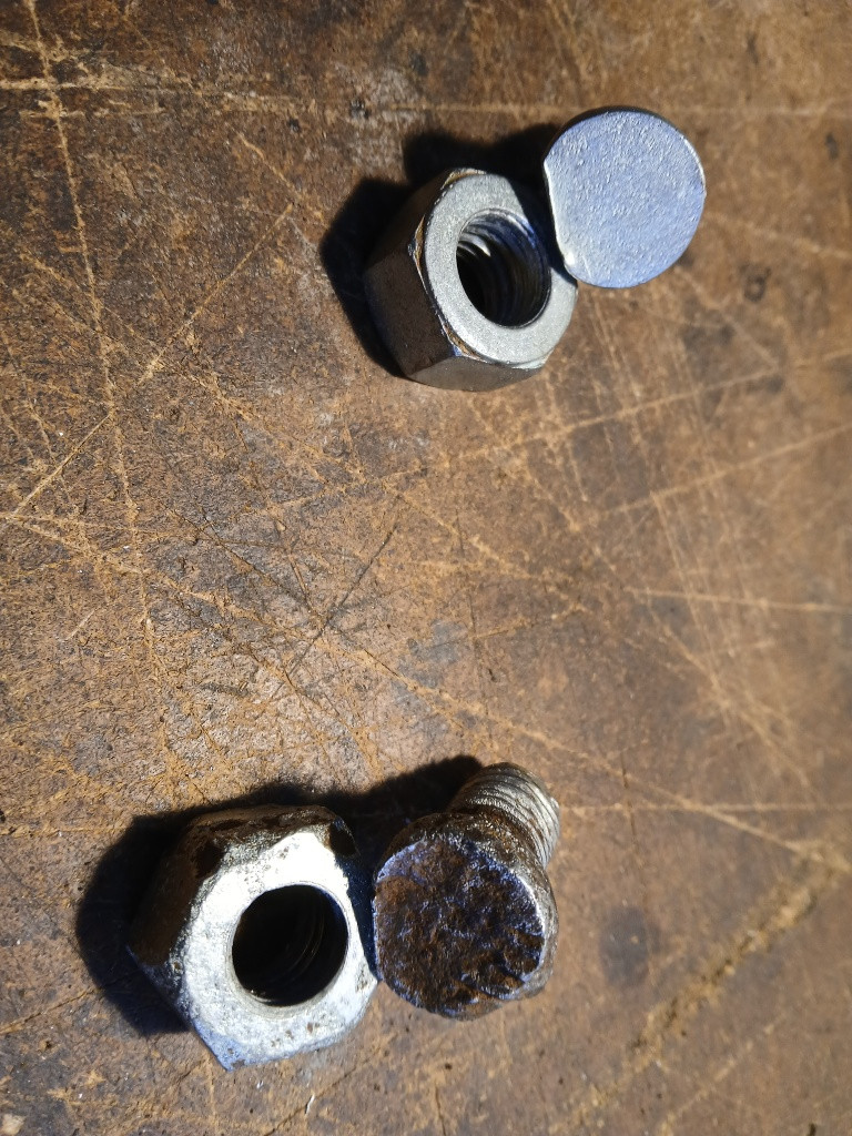 Dva kusy šteftů včetně matek půleného disku na vůz Dodge WC - viz foto. Jeden je o něco horší, ale použitelný. cena 200,-