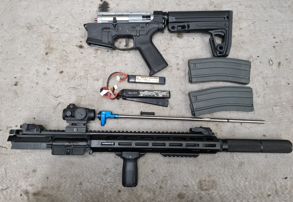 Dobrý den prodám dmrko of výrobce double eagle v upgrade Konkrétně tam je prowin komora , nerezová hlaveň , airsoftpro trysku , nerezový válec , myslím si že tam je i hlava pístu od airsoftpro , tmavě modrý píst (už si nepamatuju výrobce). Ve zbrani nefunguje safety (chybí zarážka spouště otázka 80 kč), na pravé straně není přepínač střelby, ještě tam je jinadší pažba a mechabox je vyměněný. To je asi vše co k zbrani říct Nejlépe osobní předání ale jsem schopný poslat na dobírku když zaplatíte poštovné. střílí jak má. Ke zbrani vše co je na foto