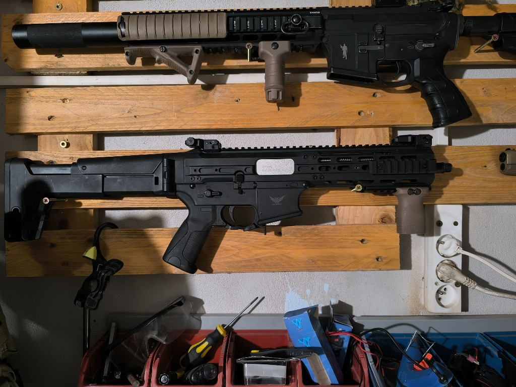 Prodám UTR45 od Double Eagle. Součástí prodeje: Zbraň a celkem 3 tlačné zásobníky. Stav: Viditelné známky používání, ale mechanicky v pořádku. Konektor Dean-T. Elektronika: Uvnitř je základní procesorovka Falcon (nastavení střelby přes spoušť). Ideální pro někoho, kdo chce levný a funkční základ na hraní nebo na projekt. Doprava: Osobní předání, nebo Zásilkovna. ( Grip, flash hider a kolimator není součástí prodeje) Cena není pevná