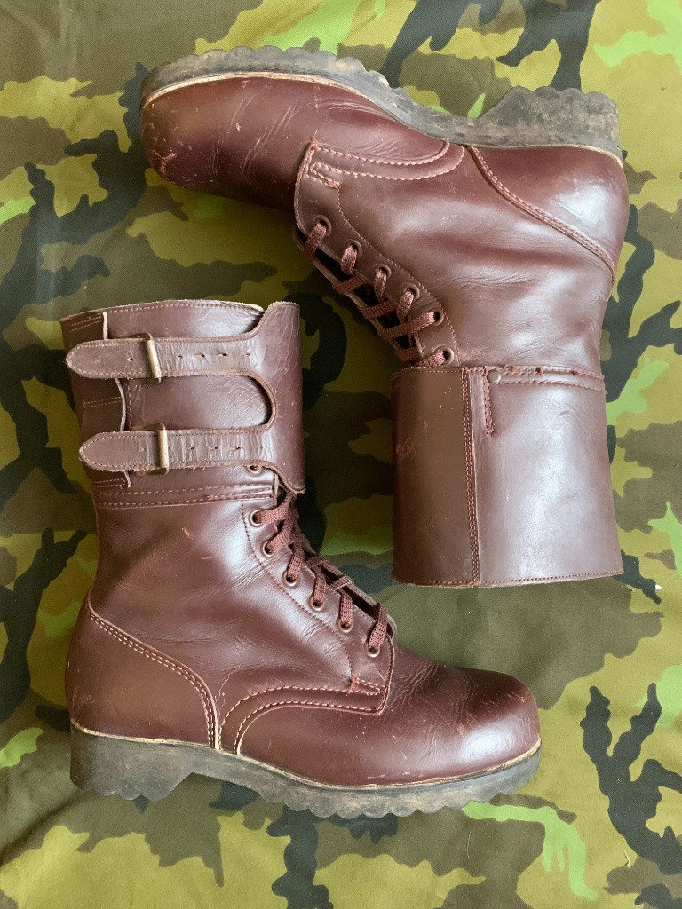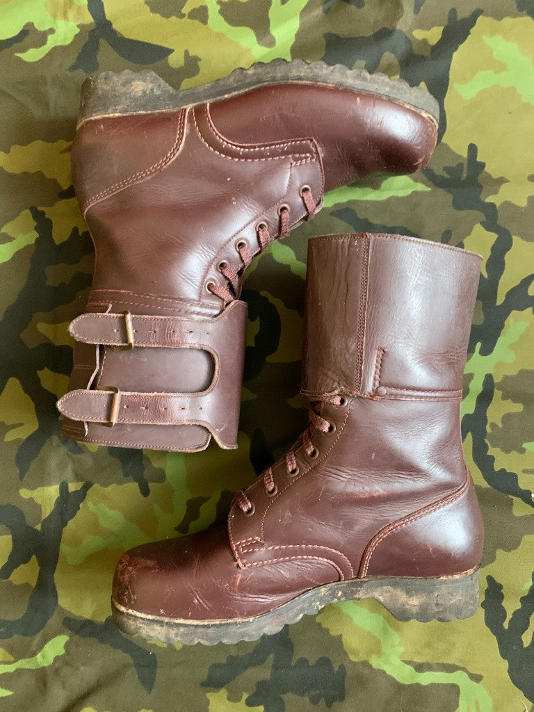 Prodám důstojnické kanady vz. 60, hnědé. Velikost 26,5 (255) (klasické číslování okolo 40). Kvalitní české vojenské kanady, špatně sehnatelné. Kontakt nejlépe přes SMS nebo email.
