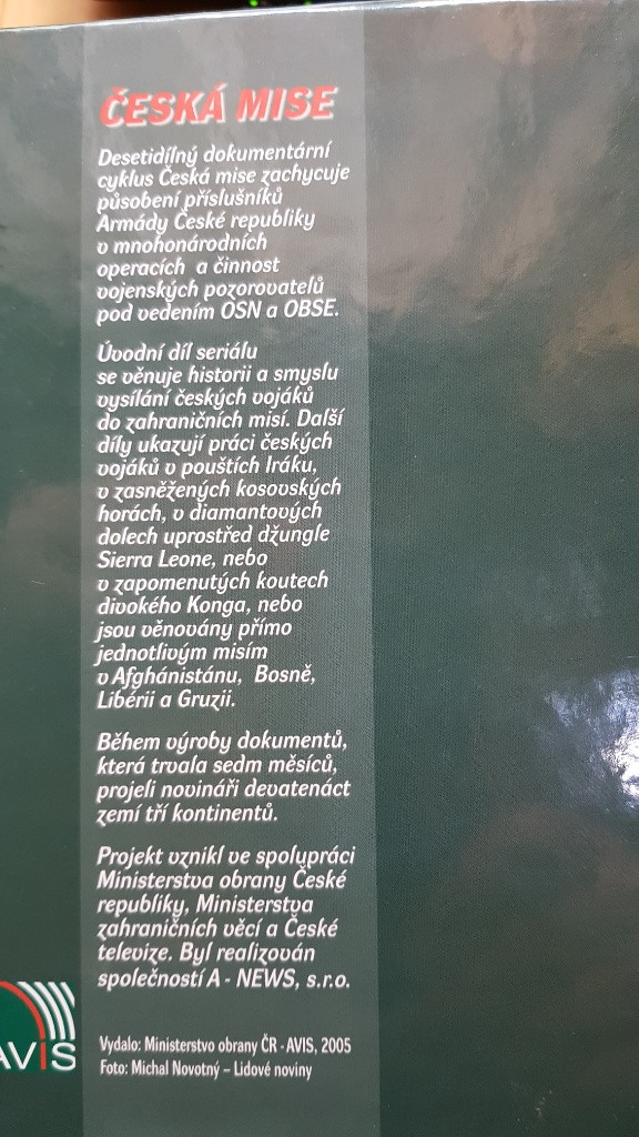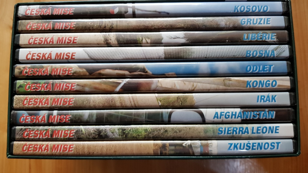 Prodám originální box 10 ks DVD se zahraničními misemi AČR (viz foto).