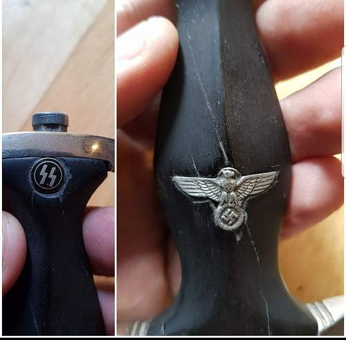 Ahoj všichni, co si myslíte o této dýce SS? Je na ní něco dobrého nebo originálního? Myslím, že rukojeť s orlem a knoflíky s runami SS jsou určitě vyměněny, všechny názory jsou vítány. S pozdravem
