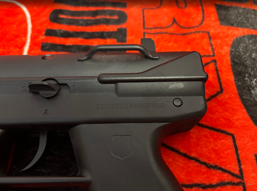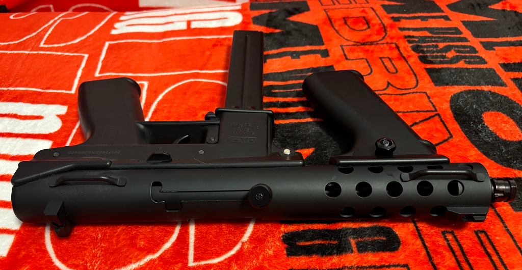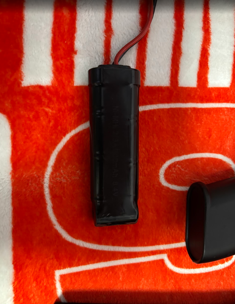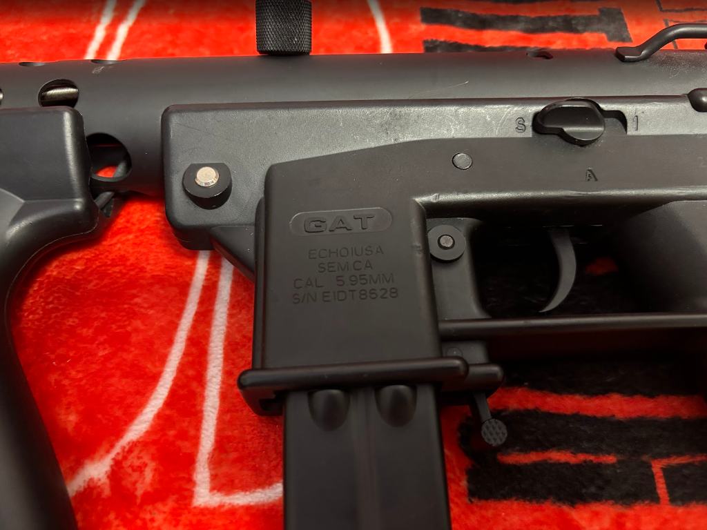 Prasklý plastový závěr - pouze kosmetická vada, na funkci nemá vliv. Ideální pro opravu 3d tiskem. Jinak vše funguje jak má. V balení zbraň, 2x hi- cap zásobník, baterie Ni-MH 8.4V. https:// www.evike.com/products/54506/