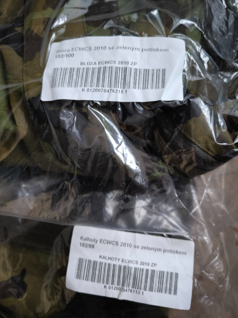 Prodám komplet ECWCS+ impregnační sprej, nové, Bunda velikost 182/100, kalhoty velikost 182/88, cena 1800,-+ doprava.