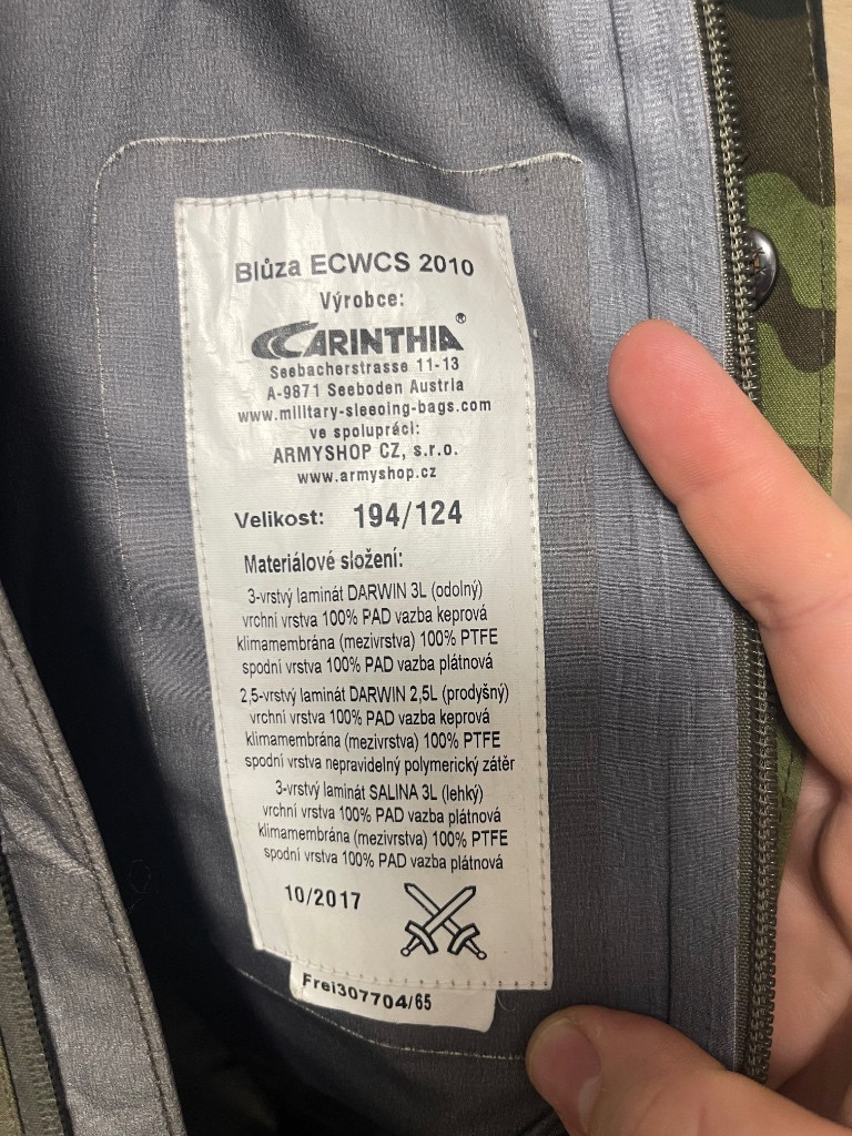 Carinthia komplet vz.2010 Drobné poškozeni viz foto jinak v pořadku Cena za komplet jinak bunda 1500 kalhoty 1000