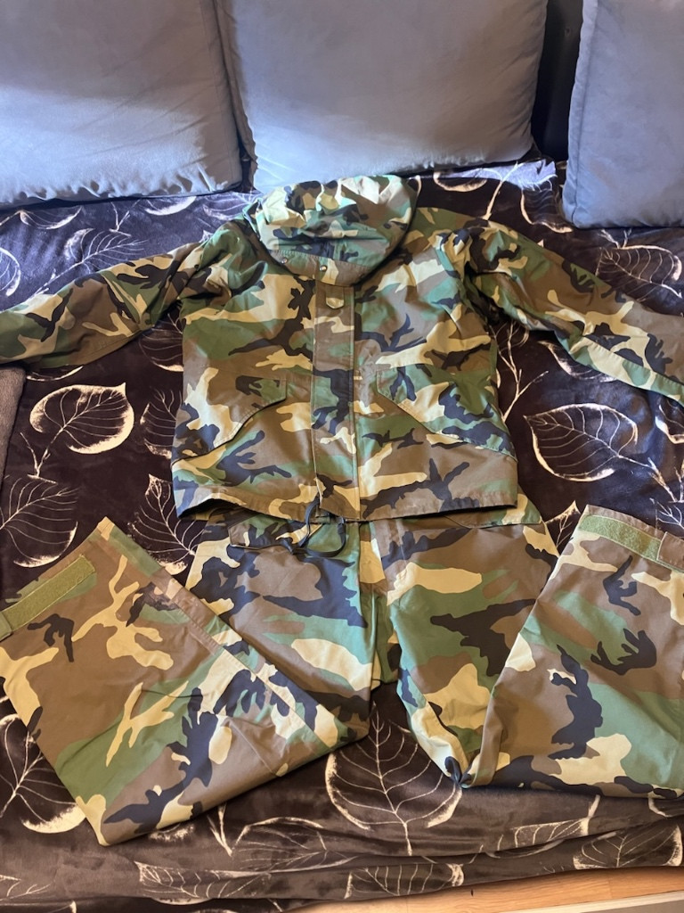 Komplet gorace ve woodlandu, perfektní stav. Velikost Med- Reg