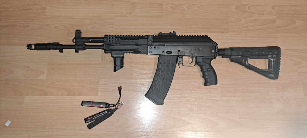 Predám toto pekné AK12 od výrobcu E&L, telo je oceľové. Bez poškodení telo pevné nič sa nekýva všetko drží ako má. Vnutro: Vymenená vzduchotechnika, piest SHS, všetko doladené, premazané. Nový záťažový motor Arcturus, nová hop up gumička,tŕň pružiny oceľový s ložiskom. Telo upravené na rýchlu výmenu pružiny. Pažba CAA, replika gripu RK-6. 1 tlačný zásobník E&L s vymenenou pružinou. Pridám 11,1v baterku a nabíjačku Tel. +421918925709