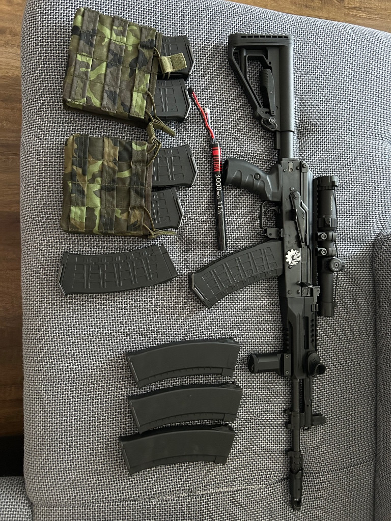 Prodám ak12 od e&l upgradovanou v hellarms.. Vnitřek zbraně maple leaf hlaveň, quantum gumička, Begadi komora. V mechaboxu epes hlava válce s epes tryskou, guarder válec, retro arms pist s epes hlavou pistu a retro kola, perun procesorovka a warhead motor. Úprava těla pro rychlovymenu pružiny… zbraň byla stavena roku 2025 a byla na asi 6 menších akci… prodej bez lpvo co je na foto… 6x e&l zásobník tlačný ak12 a 3x tlačný zásobník od arcturusu + 2x dvojsumka molle od as-tex a baterie od titanu 11,1V.