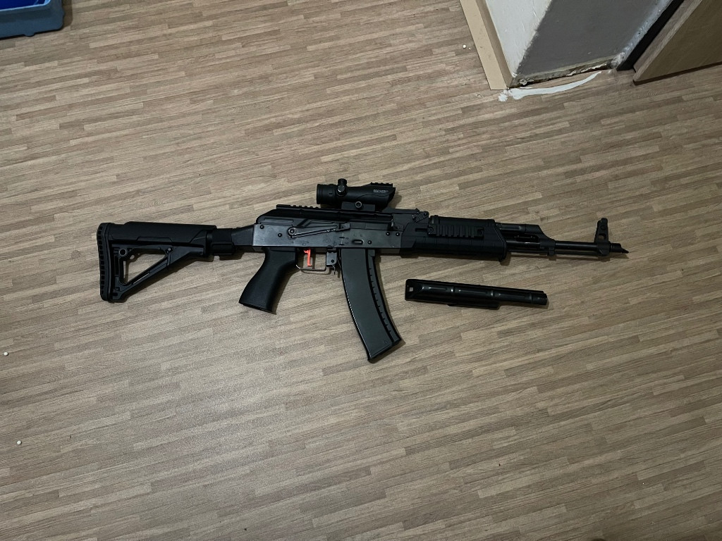 Ahoj, s těžkým srdcem nabízím svůj AEG projekt. Je To AKM od E&L. Zbraň je v prvotřídním stavu. Vše funguje samozřejmě.předpažbí je magpul na ostré a to samé adaptér na tubus. Pažba CTR no name. Dustcover s ris je cyma , ale přidám i původní.Uvnitř je nový vzduch až na trysku která těsní( zacpání sekne kola) , píst s celozubem( první ubroušen), hlava pístu( nevím teď značku) a to samé hlava válce. Mech je samozřejmě zesílený QSC. E&L tam rve plast trn ale je tam celokov od Retra. Motor je BLDC Warhead 30K. Procka je tam Jefftron Leviathan V3 Optical, protože asterka neutáhla ten motor. Je tam červená rychlo spoušť od Retra a MPLleaf guma s omegou. Hlaveň je mosaz přesná 6,04. Fluše to cca 1,8 až1,9J( spíš k 1,9). Lítá to krásně a přesně. Proč ho dávám pryč: dodělal jsem projekt a chci jít do HPA. Mám na HPA připravený AAP v v kitu. Za co bych vyměnil je full HPA set a HPA zbraň( to znamená dohromady.) Přidám ještě baterku 11,1V Titan 1200mAh, točák a jeden tlačák.