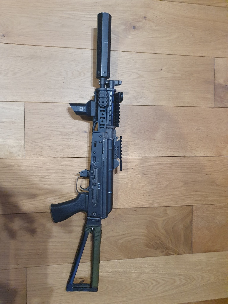 Prodám svoje AK, jedna z prvních generací E&L, takže ještě poctivá výroba. Je v lehkém UPu (vzduch EPES, Hop Up gumička Maple Leaf, pružina Guarder SP140, MOSFET, vysokozátěžový motor Aimtop) mechabox má QSC. Všechno příslušenství, baterky a zásobníky jsou v ceně. Zasílám na Zásilkovnu (na dobírku nezasílám, platba předem na účet, poštovné předem na účet.), preferuji osobní předání. Pro ty, co chtějí komunikovat přes FB: https://www.facebook.com/thomas.wolfgang.landsinger/