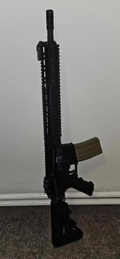 Prodám AR15 od E&L, M4 s delší hlavní a předpažbím v upgrade. Mám k ní 3ks pružin pro výkony 1,7J, 2J a 2,6J, viz foto na chronu v inzerátu. Kabeláž do tubusu, Dean-T konektor. Prodám s jedním točným zásobníkem bez baterie. Díly: Nový zesíleny mechabox s mikrospínačem - kvér samovolně nevybíjí baterii, žádná elektronika. 18:1 kola zatěžová SHS, kluzná ložiska na pístovém a středovém kole, kuličkové na motorovém. Válec s žebry, kovová hlava válce, pístu. Píst s ocelovým hřebenem a AOE podložkou. Zátěžový E&L M170 motor. Osobní prodej, zaslání zásilkovou, video funkčnosti není problém.