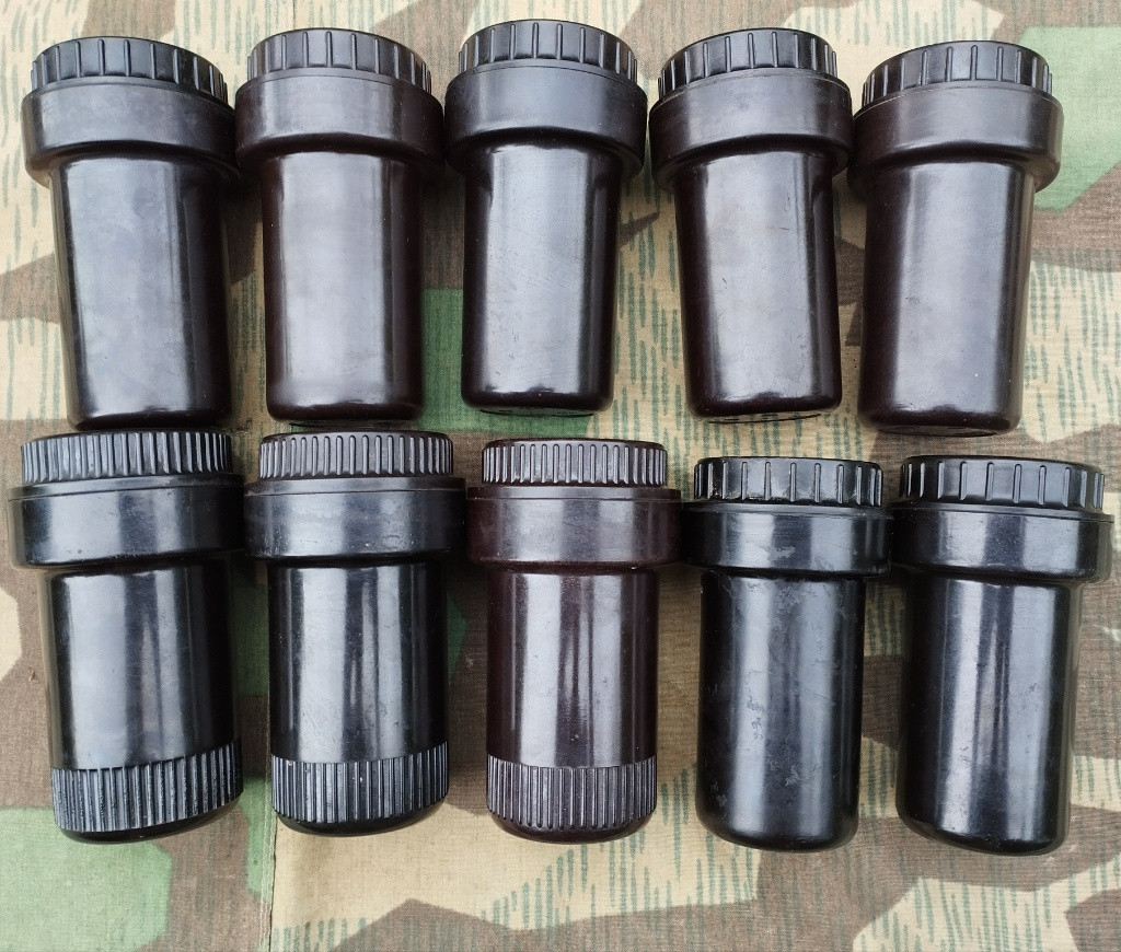 Prodám 10ks originálních pouzder pro elektrický zapalovač ELAZ-25 využívány luftwaffe. Všechny jsou v pěkném stavu pouze jedeno má malou prasklinu . Více foto není problém. Cena 350kč/1ks to s prasklinu 190 kč, při koupi více kusů sleva. Platba předem na účet nebo osobní odběr Praha.