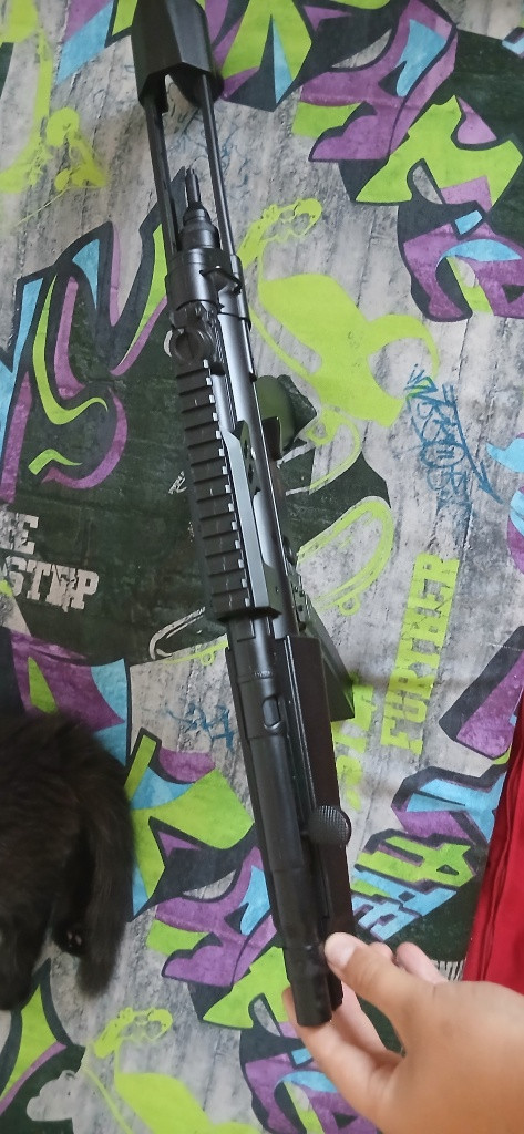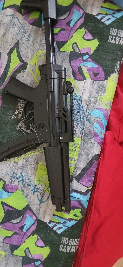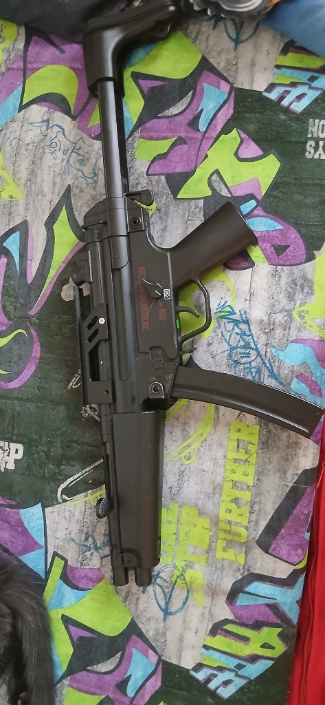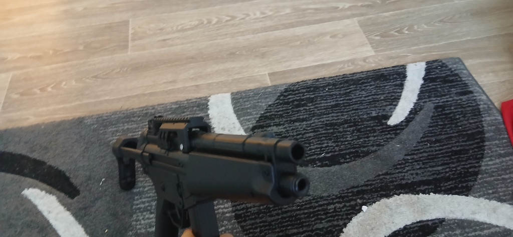 Dobrý den prodám elektrickou mp5 s 2 zásobníky a nabíječkou a baterkou na zbrani jsou známky opotřebení třeba ve předu je urvaný závit na tlumič a chybí přední mířidlo je zde i hop up