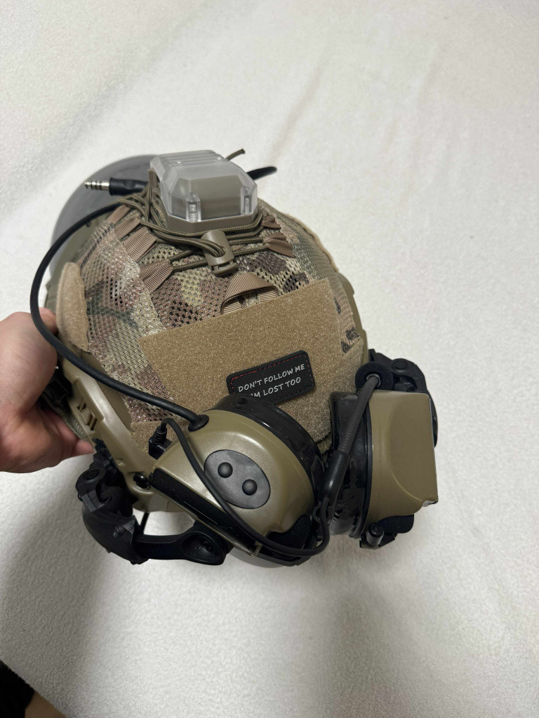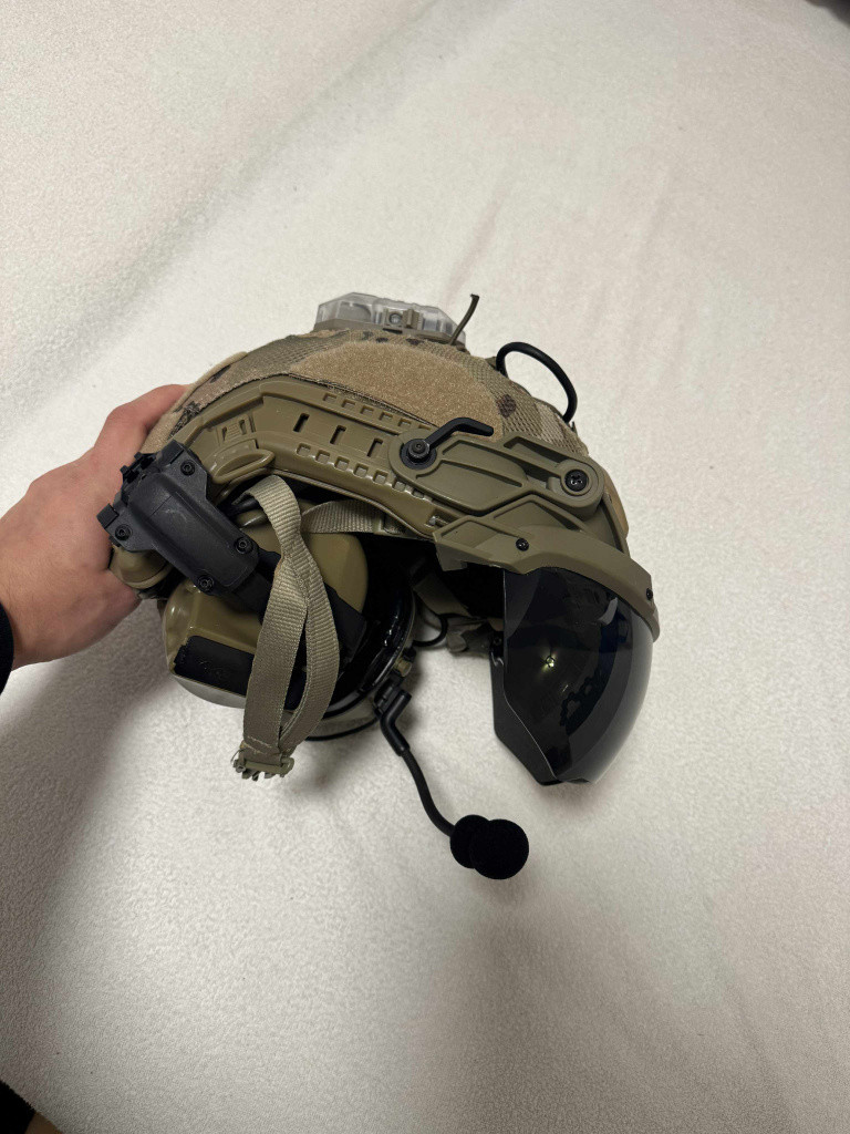 Replika helmy Ops-Core FAST od EmersonGear V perfektním stavu, jako nová Součástí: Multicam povlak EmersonGear Replika Comtac3 sluchátek, plně funkční Štít obličeje. Tmavé a čiré sklo jde vyměnit. Světelný identifikátor. 4 módy (Stálá zelená, Stálá zelená a blikající bílá, Infračervená, Blikající infračervená) Preferuji osobní převzetí v Ostravě a okolí