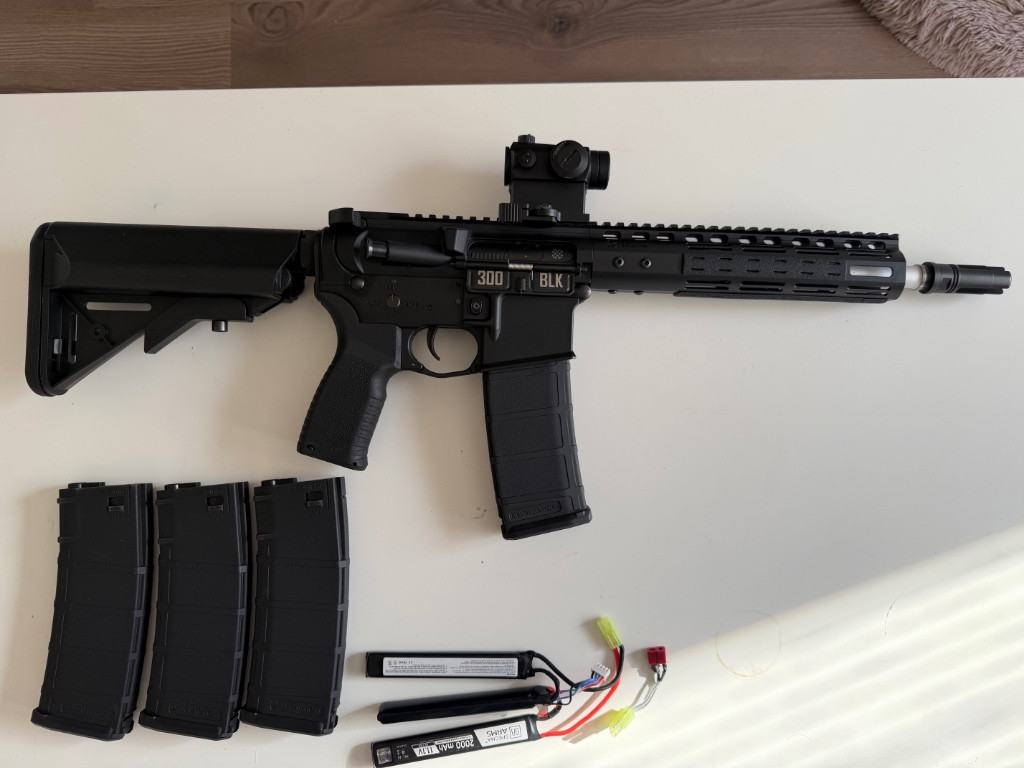 Rád bych prodal aeg Noveske emg cyma v černé barvě. Zbraň kupovaná minulý rok v červeneci za účelem předělání na hpa pohon, se kterého sešlo. Zbraň je tedy v základu. Ke zbrani přidám krytky, kolimátor t1, 4x zásobník na 120bb delta armory, lipolku 11,1. Bohužel mám doma jen jednu nabiječku na lipolky, kterou používám, tak zbraň prodám bez ní. Samozřejmost před odeslání baterku nabiju. Zbraň je jako nová, válela se mi v krabici doma. Je ještě pár měsíců v záruce.