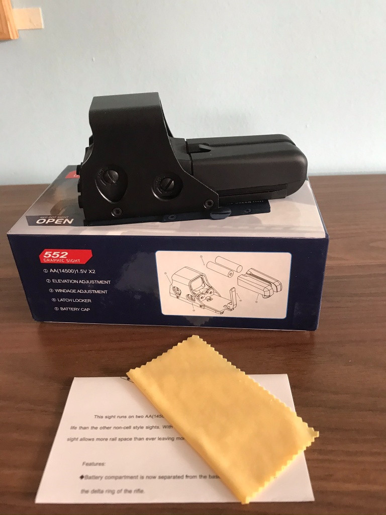 Prodám Eotech 552 viz fotky. Kolim použitý pouze párkrát, plně funkční, bez škrábanců nebo jakéhokoli poškození. Montáž na standartní RIS lištu. CENA 800 Kč.