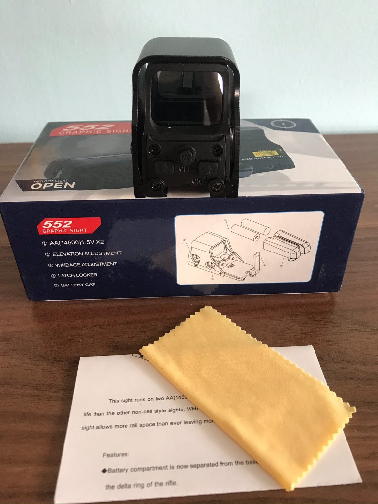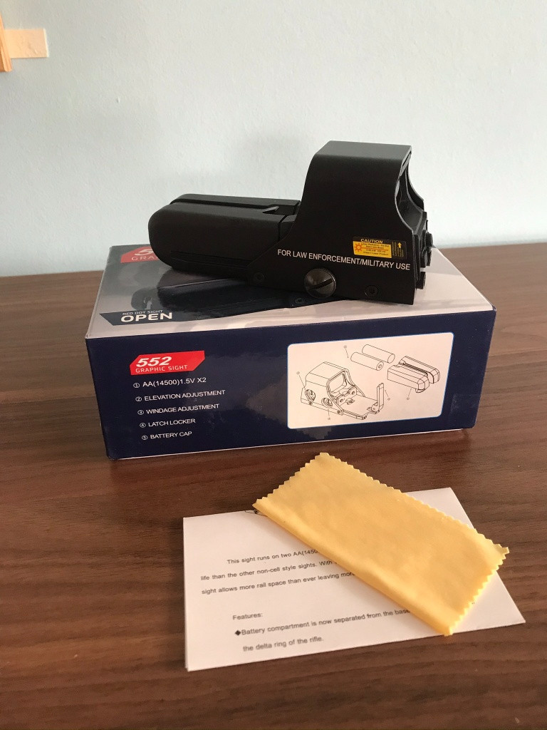 Prodám Eotech 552 viz fotky. Kolim použitý pouze párkrát, plně funkční, bez škrábanců nebo jakéhokoli poškození. Montáž na standartní RIS lištu. CENA 800 Kč.