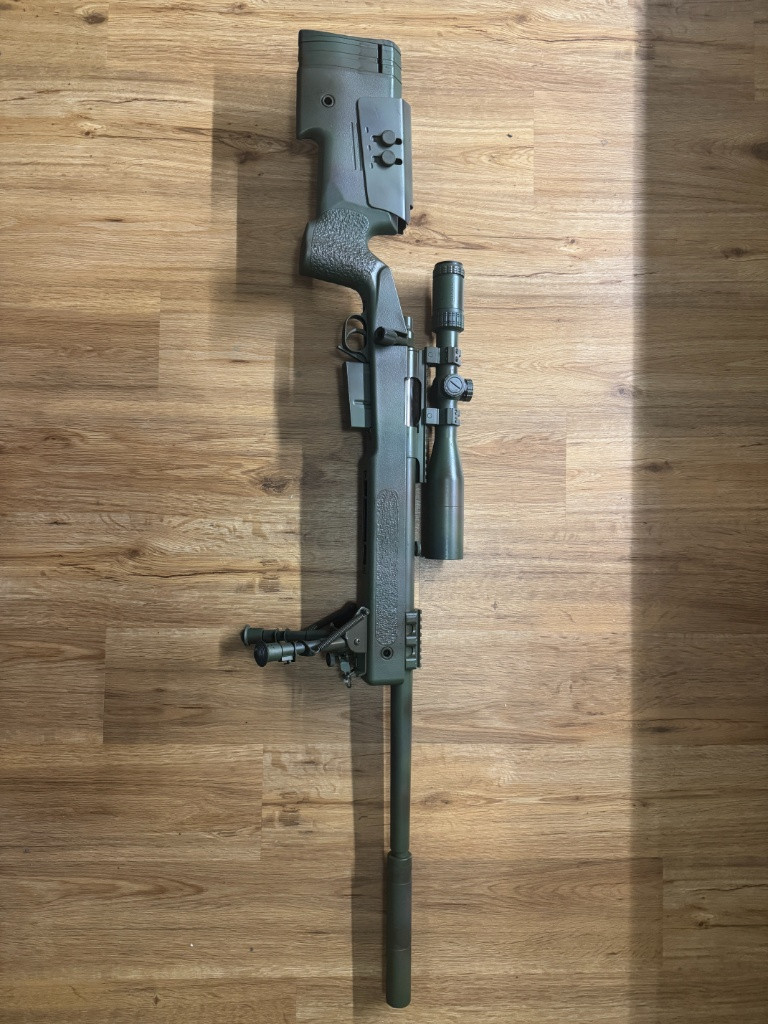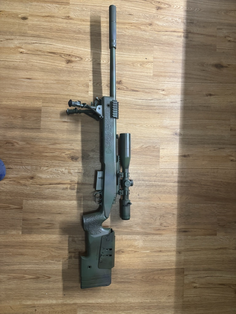 Prodám EPESní M40A3 v pěkném stavu, 2x zásobník, optika Puškohled VictOptics 4-16x44, kopie Harris Bipod. Dodělaná ocelová natahovací páka .Při rychlém jednání přidám 2x pytlík kuliček. Cena 13500kč, dohoda možná , předání po dohodě možné v Kladně, Praze a Havlíčkově Brodě nebo kdekoliv na trase mezi.