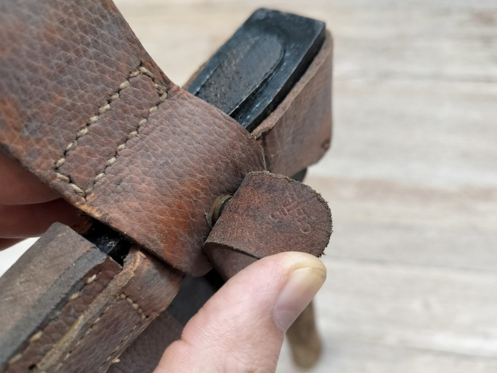 | Závěsník na bodák Mauser Wehrmacht hnědý značený RBNr. |
