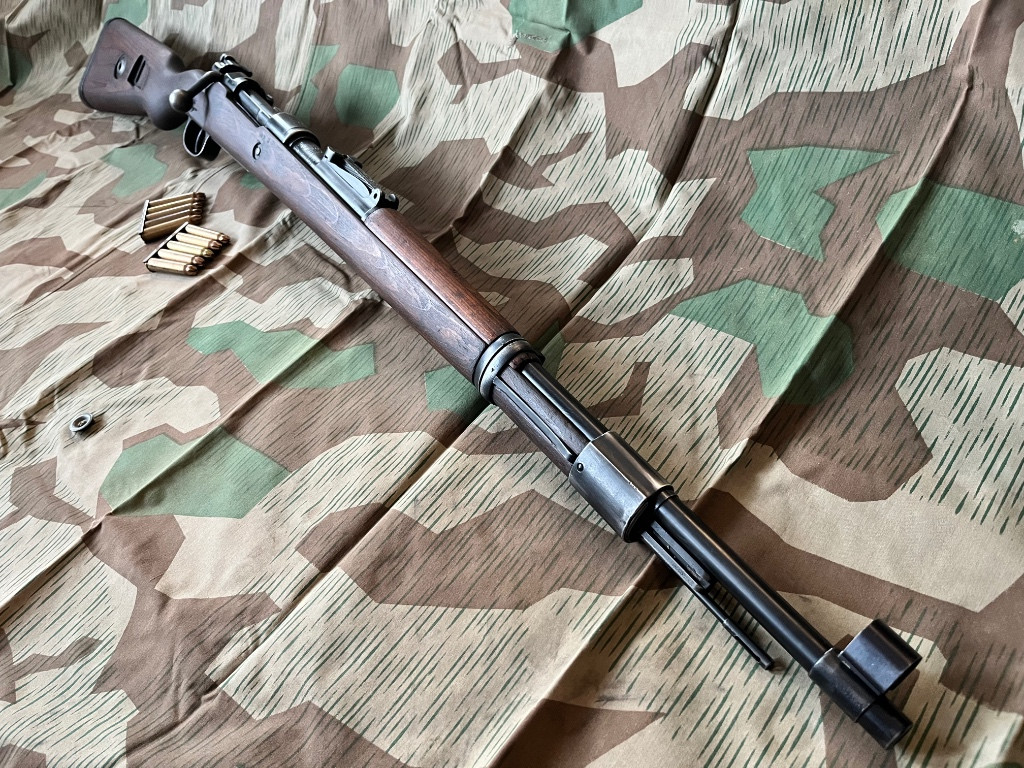 Prodám expanzní pušku Mauser K98. Ráže 8x57 Blank. Rok 1938, S/42. Jedná se o výrobu od pana Hovohradského z roku 2016, takže bez nutnosti registrace. Volně prodejná od 18ti let občanům ČR. Tyto pravidla pro danou zbraň platí nadále, i po novele zbrojního zákona od 1.1.2026. Stav je samozřejmě perfektní, plně funkční. Puška je určena pouze a výhradně ke střelbě slepými náboji pro účely klubů vojenské historie.