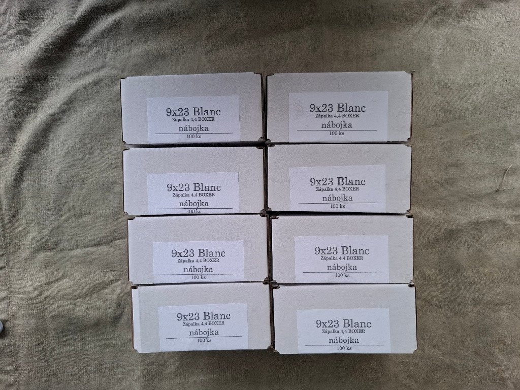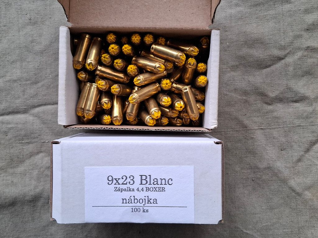 Prodám Expanzní náboje 9x23 Blanc kat. D od 18ti let. Cena 1 300 Kč je za jednu krabičku která obsahuje 100 kusů nábojů.