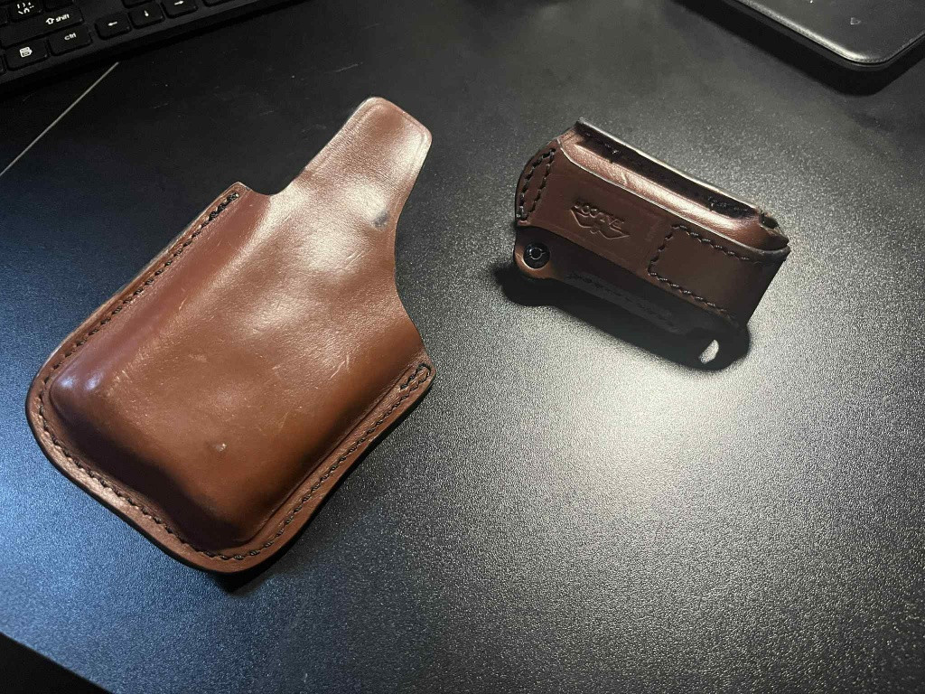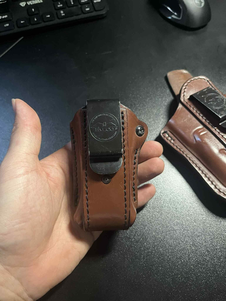 Kožené pouzdro Falco holster, na Glock 19, se svítilnou Streamlight TLR7A a možností kolimátoru a tritiových mířidel 8mm. Stav 7,5/10. Cena 1 400 Kč. Kožené pouzdro Falco holster na zásobník 9mm ideálně Glock 19. Stav 9/10. Cena 800 Kč. Oboje za 1900 Mrkněte na další inzeráty.
