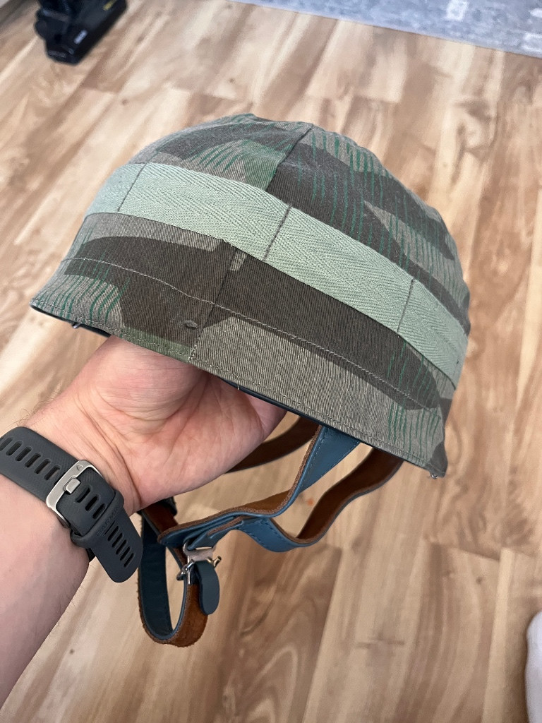 Predám peknu repliku nemeckej výsadkarskej prilby M38 aj s poťahom v kamufláži splintertarn, dôvod predaja je nevyužitie