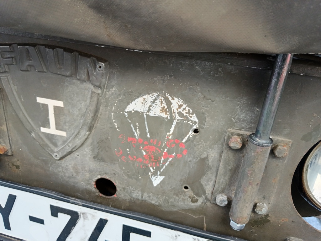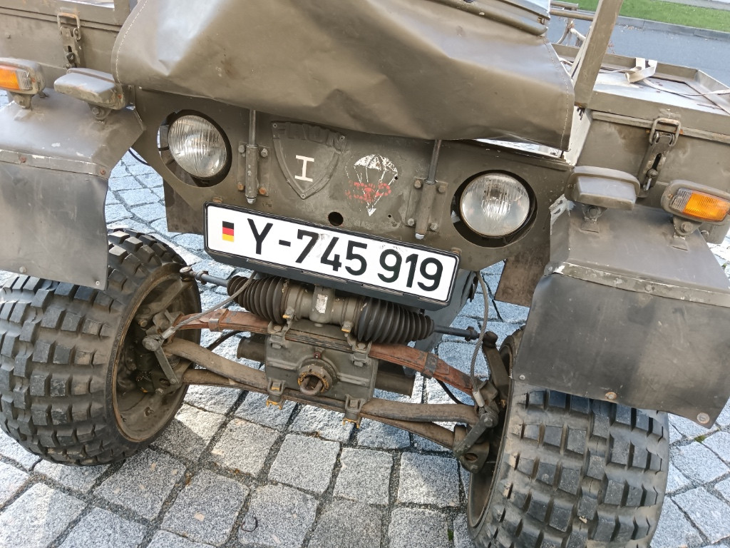 Vojenská čtyřkolka výsadkář Bundeswehr. Motor BMW 750. Plně funkční, originál kompletní s BW doklady, možno přihlásit na bílé značky nebo veterán. Originál lak i značení - nepředělávaná, dobré pneu.