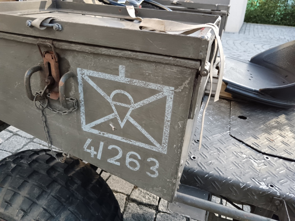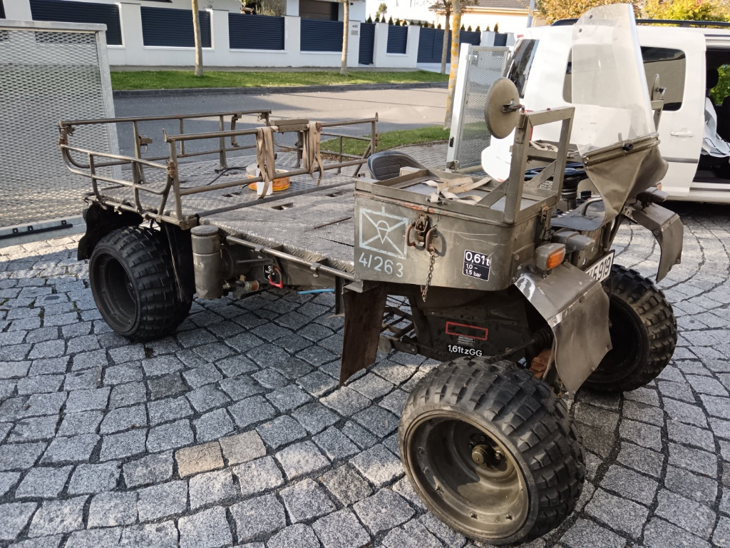 Vojenská čtyřkolka výsadkář Bundeswehr. Motor legendární boxer BMW 750. Plně funkční, originál kompletní s BW doklady, možno přihlásit na bílé značky nebo veterán. Originál lak i značení - nepředělávaná, dobré pneu. Včetně čelního štítu, možnost dalších doplňků. Sběratelský kousek, lze složit pro naložení do vrtulníku, raritní stav s originálním značením výsadkové divize. Pohotovostní hmotnost 750 kg, oficiální hmotnost nákladu 800 kg Po výměně olejů a filtrů