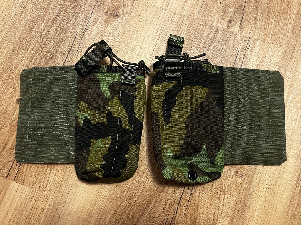 Stav jako nové. Set 2 kusy levá a pravá. Sumka se umisťuje na bok vedle panelů a překryje se boční chlopní nosiče plátů. Stabilita je zajištěna opřením o bok balistického plátu. ajištění radiostanice pomocí gumičky.