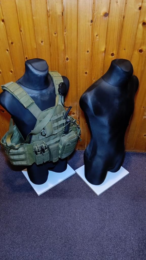 Prodám torso figuríny pro taktické vesty nebo ghilie. Vlastní výroba, skládá se figuríny z tvrdšího polystyrenu, potaženou tenkou černou látkou, dvřevěného podstavce ke kterému jsou přišroubovány cca 60cm dlouho dřevěné kulatiny, které jsou prostrčeny do nohou figuríny a zalepeny silikonovým lepidlem. Nepřevrací se. Pouze osobní odběr Náchod, zásilkovna nebo kurýr budou asi poměrně drahé vzhledem k velikosti.