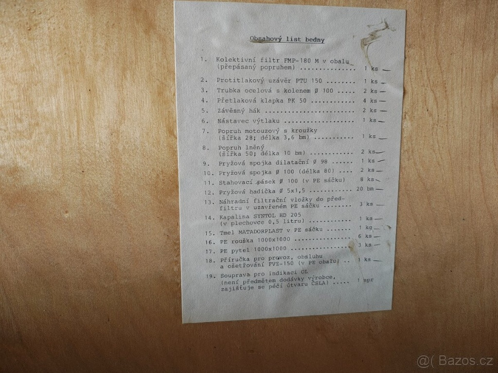 Zdravím, nabízím k prodeji ,, uloženku,, filtroventilační soupravy FVZ 150. Souprava slouží jako ochrana proti chemickým, radioaktivním a biologickým otravným látkám. Tyto soupravy byly od 80. let součástí každého úkrytu. Možno využít v úkrytu typu UŽ6. Pro své muzeum jednu filtroventilační sadu mám. Prodávám komplet co mám navíc.