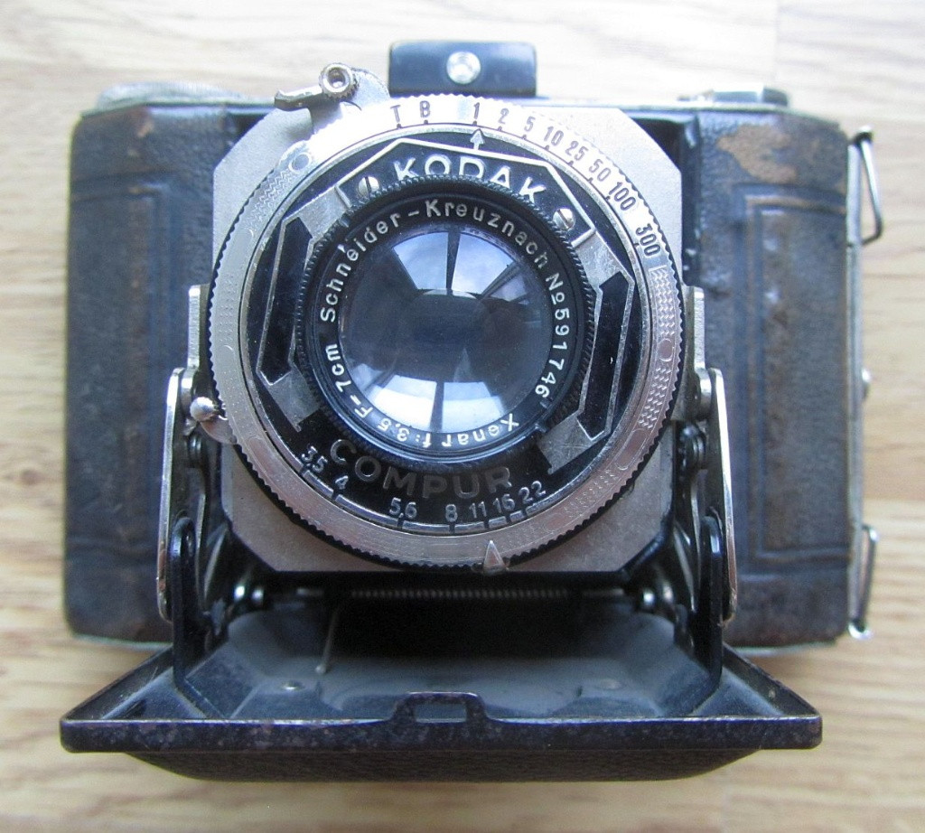 Prodám fotoaparát Kodak Duo 620 z USA vyráběný v Německu cca v letech 1933 až 1940. Nezasílám, pouze osobní předání po prohlídce fotoaparátu zájemcem. Fotoaparát či kamera není po servisu a min. od roku 1994 se s nimi nefotilo či nenatáčelo.