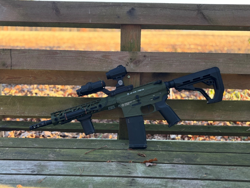Zdravím prodám Freya v upu . Up prováděl airsoft na divokém západě. Je tam měněná vzduchárna + motor . Up vyšel cca na 5000,- (gumka tam je samozřejmě taky měněna) na M120 to momentálně dává 1,9J a na nějaký starý M110 to háže 1,5J Motor tam je INFINITY asg 45K dává 22rps (docela slušná vrtačka). Ke zbrani přihodím 2x gens baterii 1000mah 11,1V kupovány 2 měsíce zpět společně se zbraní a použity 3x každá (flash hider dám původní) jediný co si nechám je grip + původní balení k tomu bude PC všeho +-12K Pouze prodej . Přechod na HPA a zbraň s HPA už mám