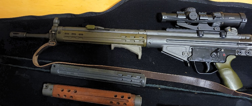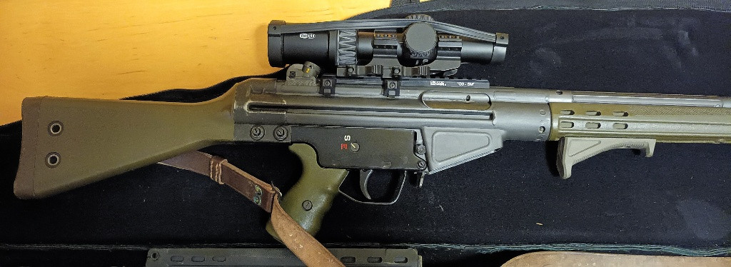Dobrý den, prodám samonabíjecí pušku G3 POF (kat. B, ráže .308 win) + velké množství příslušenství (viz. foto). Zbraň je minimálně střílená (přibližně 200 ran), je osazená naháňkovou optikou od meopty, montáž je fab defense, kroužky čína. Bajonet je originál ze Švédska. Ke zbrani také přidám cca 500ks nábojů i pouzdro co je na foto. Podávám pouze jako celek! Cena dohodou.