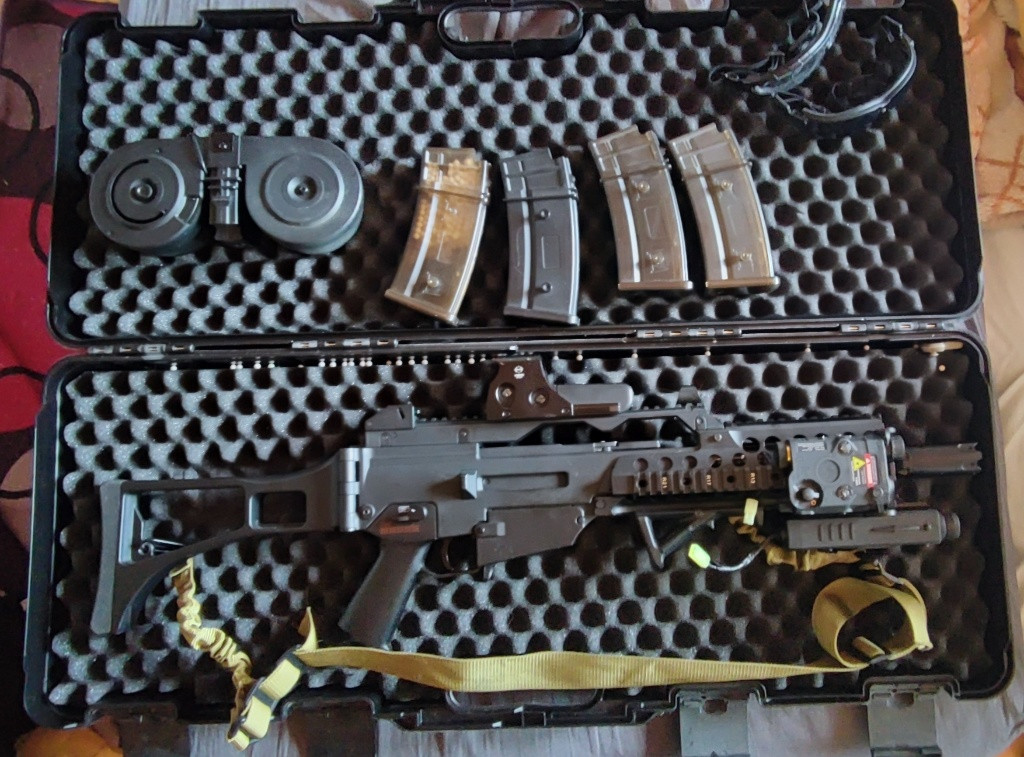 Nabízím airsoftový samopal G36 od cyma bez upgradu s doplňky baterie originál a druhá 1600 , peq, nasvetlovaci tlumič,bubnový zásobník na 1800 kuliček 4 zásobníky , kolimator, dvojbodový popruh s pevným transportním kufrem a airsoftovou pistoli Zastava cz 99 pro z náhradní baterii a dva zásobníky také s kufříkem foto pošlu po domluvě a zájmu pořizovací cena toho všeho byla 22000 Kč moje představa je 11000 Kč za vše vše je plně funkční jen se vybavit a jít do hry.