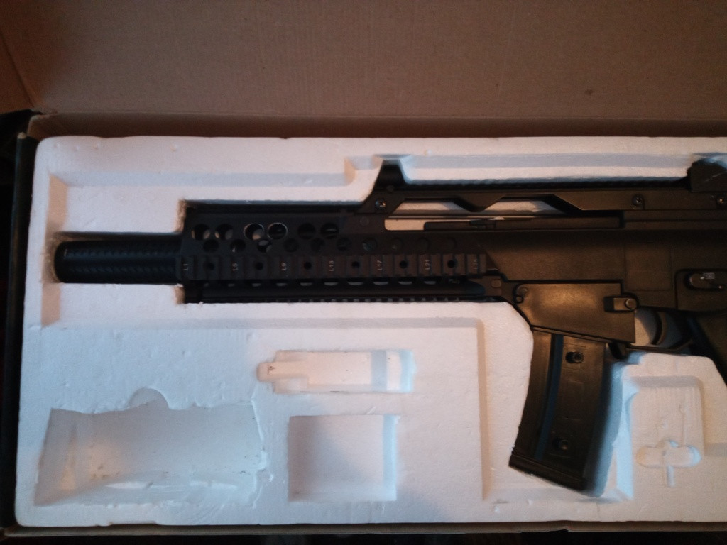 Dobrý den nabízím G36 s kovovým ris předpažbím a tlumičem jak je na fotce, s origo krabicí