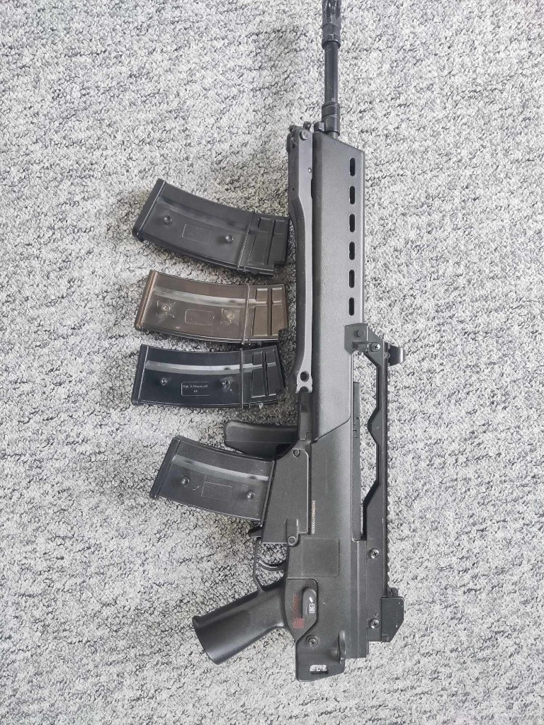 G36,gen. 2, lišta, dvojnožka, JJ Zdravím, prodávám svojí elektrickou G36. Koupil jsem jí cca před pěti lety a byla používána zejména na menší víkendové akce několikrát do roka: https://www.airsoftguns.cz/g36-lista-dvojnozka-jing-gong- g608-4 Je ve velmi dobrém stavu a to i ohledně vnitřností, před dvěma lety byla totiž kompletně upgradována v hodnotě 5 000 kč, čímž byla i zvednuta její úsťová rychlost z původních 110 –120 m/s na 145 – 150 m/s. Ke zbrani nabízím 4 zásobníky (2 tlačné a 2 točné) a baterku baterku viz. foto. BEZ nabíječky!