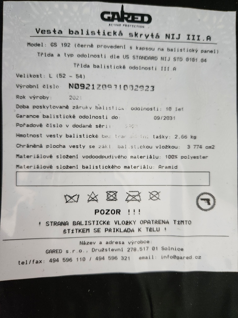 Prodám vestu od výrobce GARED s balistikou III.A model GS 192.Vesta je ve velikosti L a je ve stavu nové vesty se zárukou balistické odolnosti do 9/2031 . Cena 8000kč,můžu poslat Zásilkovnou na dobírku.