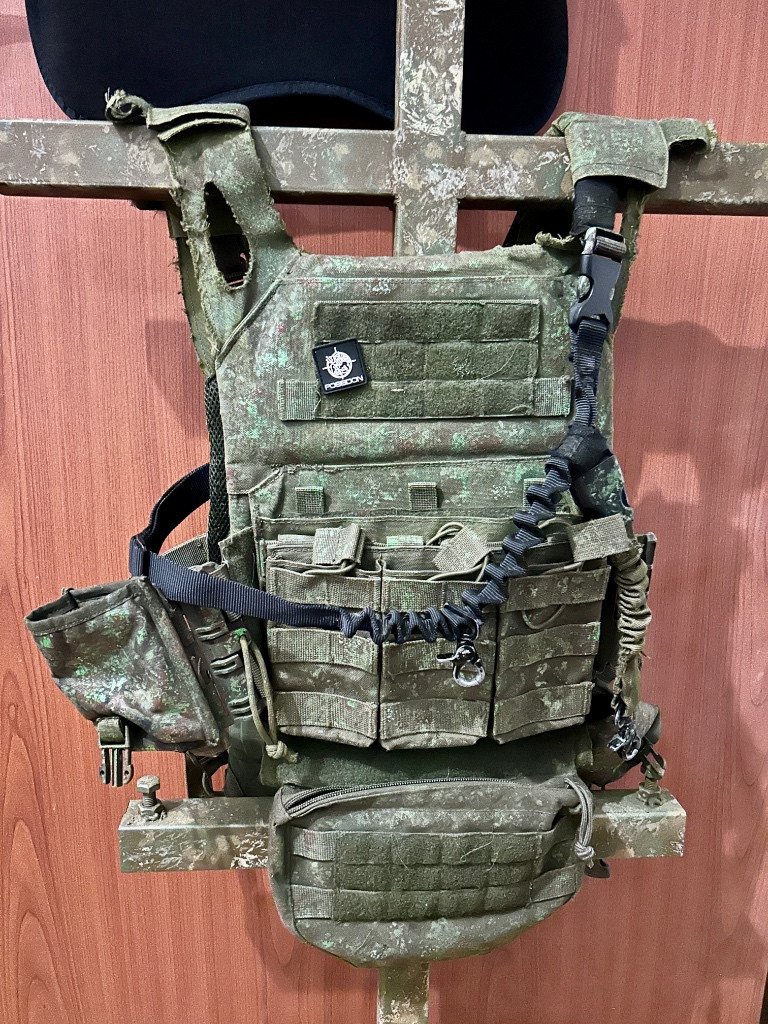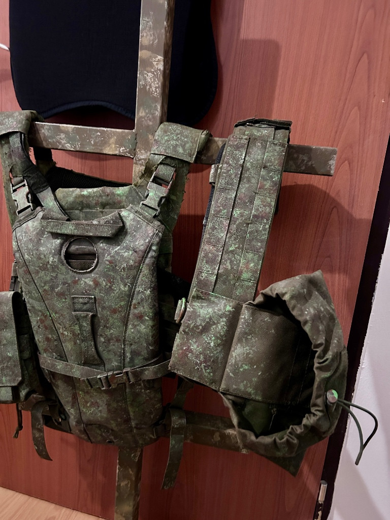 Prodám vestu (L/M) jak je na fotce včetně všech sumek a popruhu , na zádech sundavací vah (hpa lahev) - 1500 Včetně opasku a odhazovaku - prodavam společně Přilba stříknutá do stejné barvy (M) 500 Vše dohromady nechám za 1700 Možná výměna za něco zajímavého