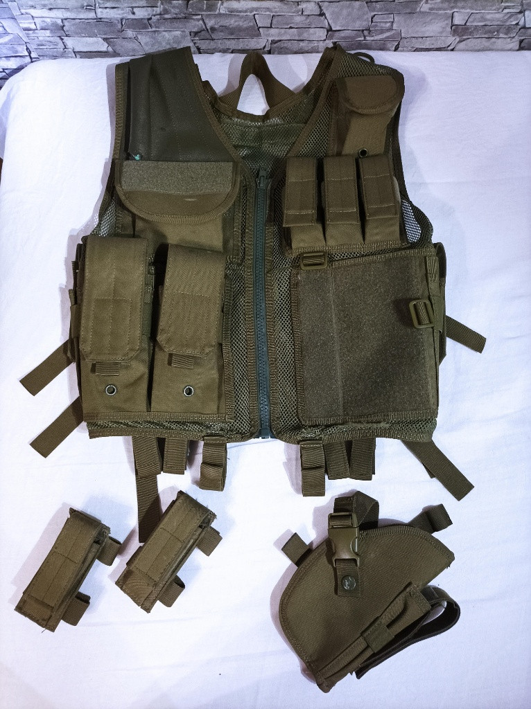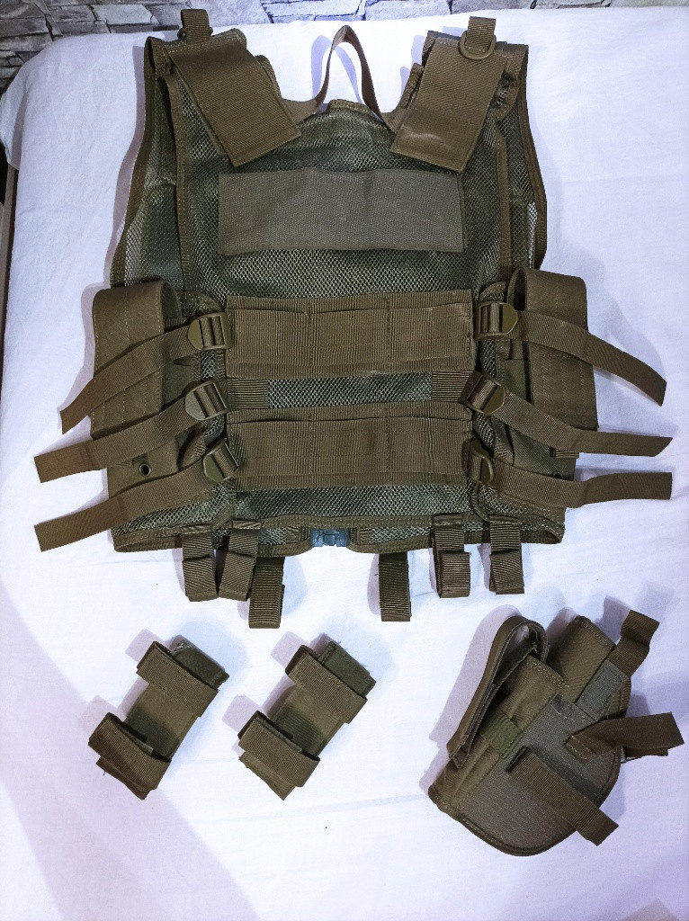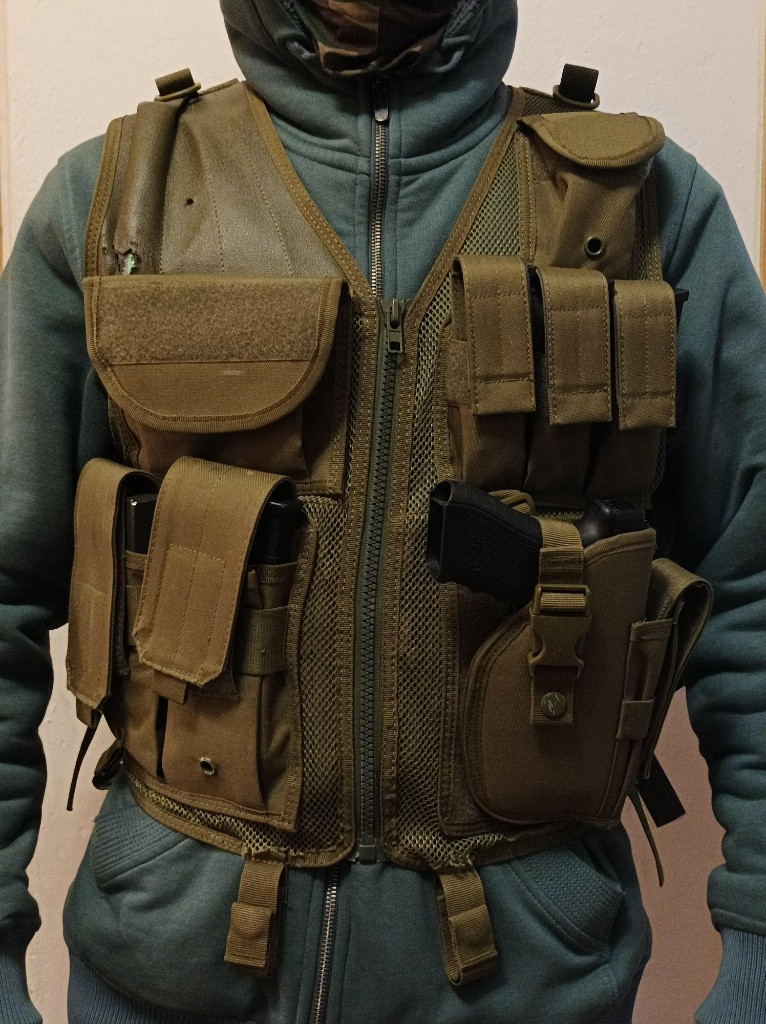 Prodám airsoft vestu KAM-39, je trošku ostřílená, ale pořád se dá nosit, funguje jak má a vypadá dobře (viz. fotky). Byla použita asi v 7 bitvách, kupní cena byla 1400, prodám za 950. Holster na vestě je dělaný na glock, ale dostal jsem do něj i čezetu. Jediná závada je odstřelená barva na pravém rameni. Důvod prodeje - přecházím na multicam Platba a předání - v okolí Brna - osobně, jinak na dobírku V případě nějakého dotazu se ozvěte. Tento inzerát už tu jednou je, ale nějak se pokazilo telefonní číslo a mail, tak tady je to správně