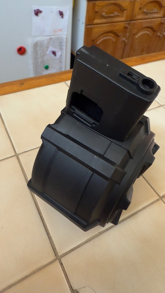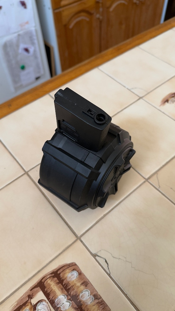 Prodám manuální točný bubnový zásobník pro m4. Kapacita 2300bb.