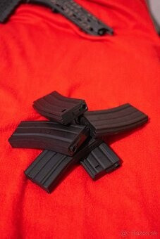 Dobrý deň, ponúkam na predaj túto krásavicu, na zbrani boli menené akurát prevody inak je všetko ako v sérií, zbraň predávam v stave ako je na fotkách, všetko je plne funkčné, zbraň podáva a strieľa Ku zbrani dávam 1x točný plast (originál) a 5x tlačný zásobník kovový, 2x lipo batérie TopArms 11,1V 1000mAh, nabíjačka, veľké puzdro na zbraň (obal) (v kľuté vhodné aj na dlhú zbraň) malú plničku Zbraň je možné po dohode vidieť, vyskúšať Pri zaujme pošlem aj video zo streľby