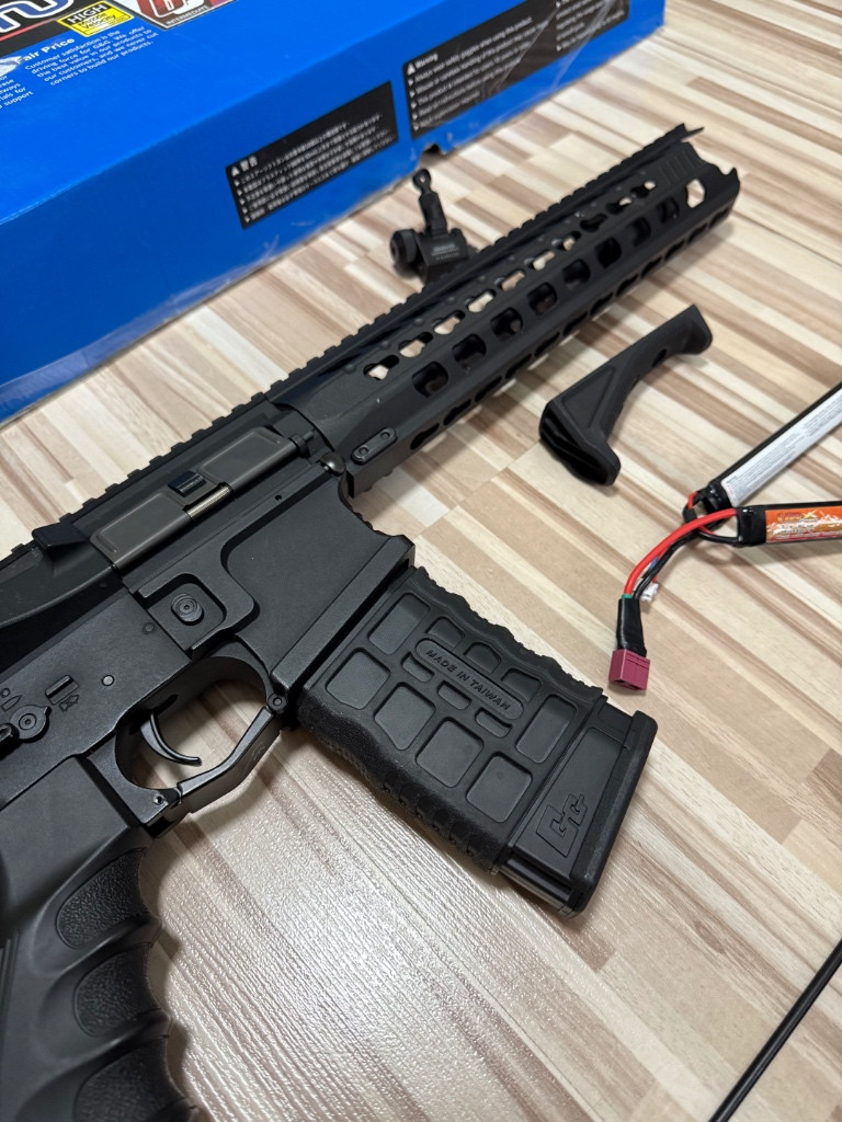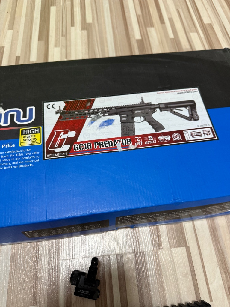 Predám airsoftku G&G GC16 Predator – výborný stav Predám elektrickú airsoft zbraň G&G GC16 Predator od známeho výrobcu G&G Armament. Hlavné výhody: • Celokovové telo s KeyMod predpažbím – ľahšie a pohodlnejšie na úchop • Výsuvná pažba s priestorom na batériu • Zásobník na 300 rán s gumovým návlekom • Výkon cca 410 FPS, kadencia 22 BB/s • Elektronická spúšť (E.T.U.) s možnosťou Burst módu • Kvalitný vnútorný mechabox a silný motor G&G Ifrit 25k Balenie obsahuje: • zbraň • batériu • predný grip • tyčku na čistenie • pôvodnú krabicu